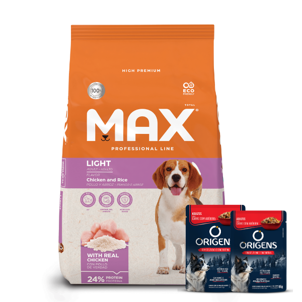 El control y la prevención de la obesidad son fundamentales para el bienestar y la salud de los perros. Max Light Pollo & Arroz, es un alimento Premium Especial, cuidadosamente elaborado para el control del peso en perros adultos. Su formulación posee el equilibrio ideal de fibras, grasa y proteínas, conteniendo todos los nutrientes necesarios para mantener a los perros sanos y en buena forma. Además, cuenta con L-Carnitina, que ayuda en la pérdida y control del peso en perros adultos.