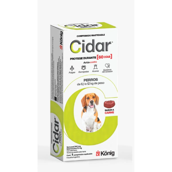 Comprimido masticable con sabor a carne, fácil de administrar. Brinda protección contra pulgas, garrapatas y parásitos internos. Duración: 60 días