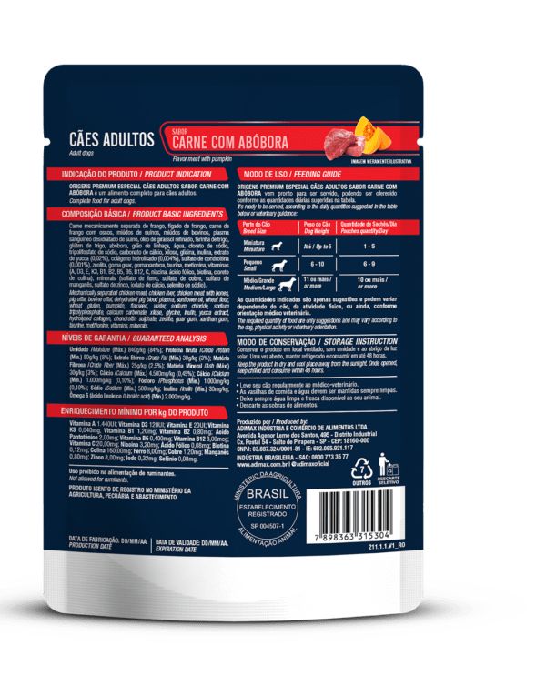 Porque este sachet no es solo comida: es una experiencia gourmet diaria. Carne de alta calidad mezclada con calabaza nutritivo, formulada para perros adultos que quieren sabor, salud y bienestar. Cero colorantes o sabores artificiales; todo lo bueno y sin lo que no aporta.